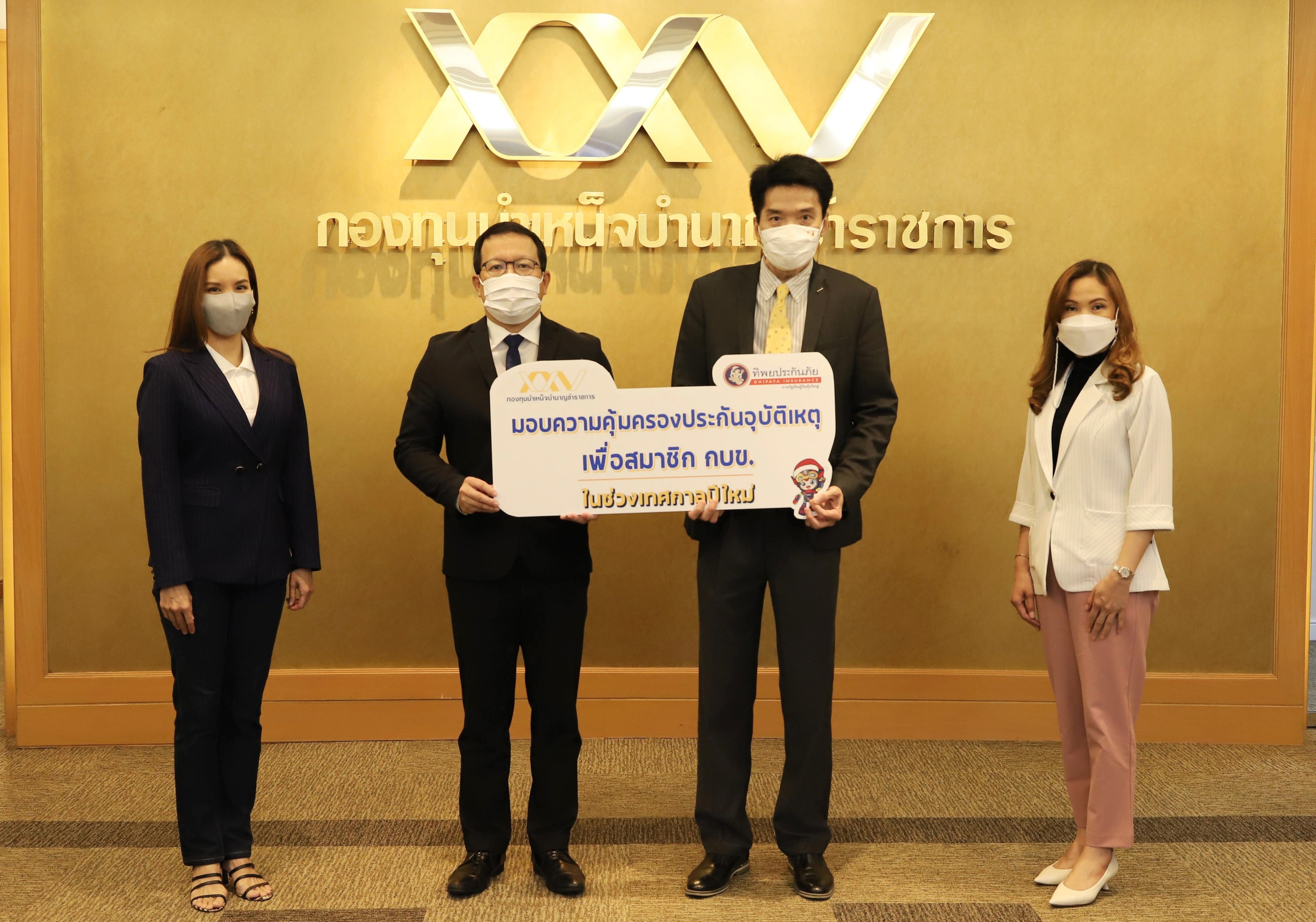 คุณพินิจ อำนาจนิยมจันทร์ ผู้ช่วยกรรมการผู้จัดการใหญ่ สายงานธุรกิจภาครัฐ และรายย่อย ทิพยประกันภัย ร่วมกับ คุณสุภวัส พรหมวิทักษ์ ผู้ช่วยเลขาธิการ กลุ่มงานสมาชิกสัมพันธ์และสื่อสารองค์กร ร่วมมอบของขวัญให้กับสมาชิก กบข. ในช่วงเทศกาลปีใหม่ ประกันภัยอุบัติเหตุส่วนบุคคล คุ้มครองสูงสุด 100,000 บาท จำนวน 20,000 สิทธิ์ สามารถลงทะเบียนรับสิทธิ์ได้ตั้งแต่วันนี้ถึง 23 มกราคม 2565 ผ่านช่องทาง LINE @tipgo สำหรับสมาชิกที่สนใจสอบถามรายละเอียดเพิ่มเติมได้ที่ LINE กบข. @GPFCommunity หรือที่ศูนย์บริการข้อมูลสมาชิกโทร. 1179