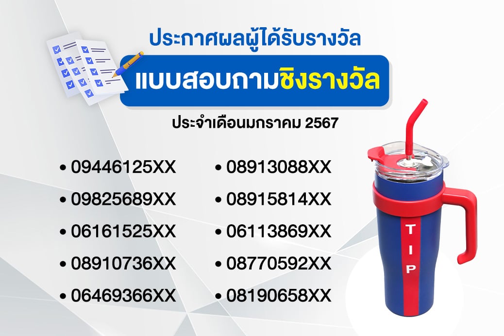 ประกาศผลผู้ได้รับรางวัลจากกิจกรรมตอบแบบสอบถามความพึงพอใจ ประจำเดือนมกราคม 2567