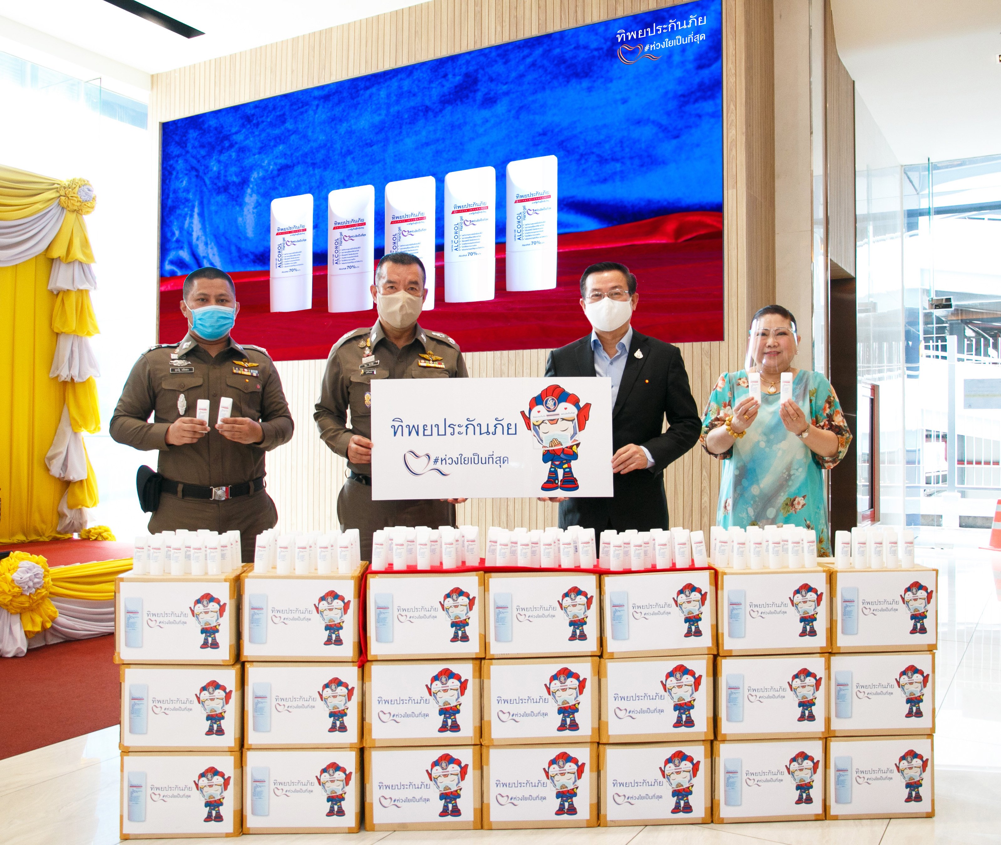 ดร.สมพร สืบถวิลกุล กรรมการผู้จัดการใหญ่ วิชชุดา ไตรธรรม ที่ปรึกษากรรมการผู้จัดการใหญ่ ทิพยประกันภัย มอบเจลแอลกอฮอล์ #ห่วงใยเป็นที่สุด สู้ภัยโควิด-19 ให้กับ พล.ต.ต.ปิยะ ต๊ะวิชัย รอง ผบช.น. เพื่อนำไปมอบให้กับเจ้าหน้าที่ตำรวจและประชาชน สำหรับทำความสะอาด ให้มีความปลอดภัย ลดโอกาสการติดเชื้อ ในช่วงการแพร่ระบาดของเชื้อไวรัสโควิด-19 ตามโครงการ ทิพยประกันภัย ห่วงใยทุกชีวิตในสังคม ณ ทิพยประกันภัย สำนักงานใหญ่ พระราม 3