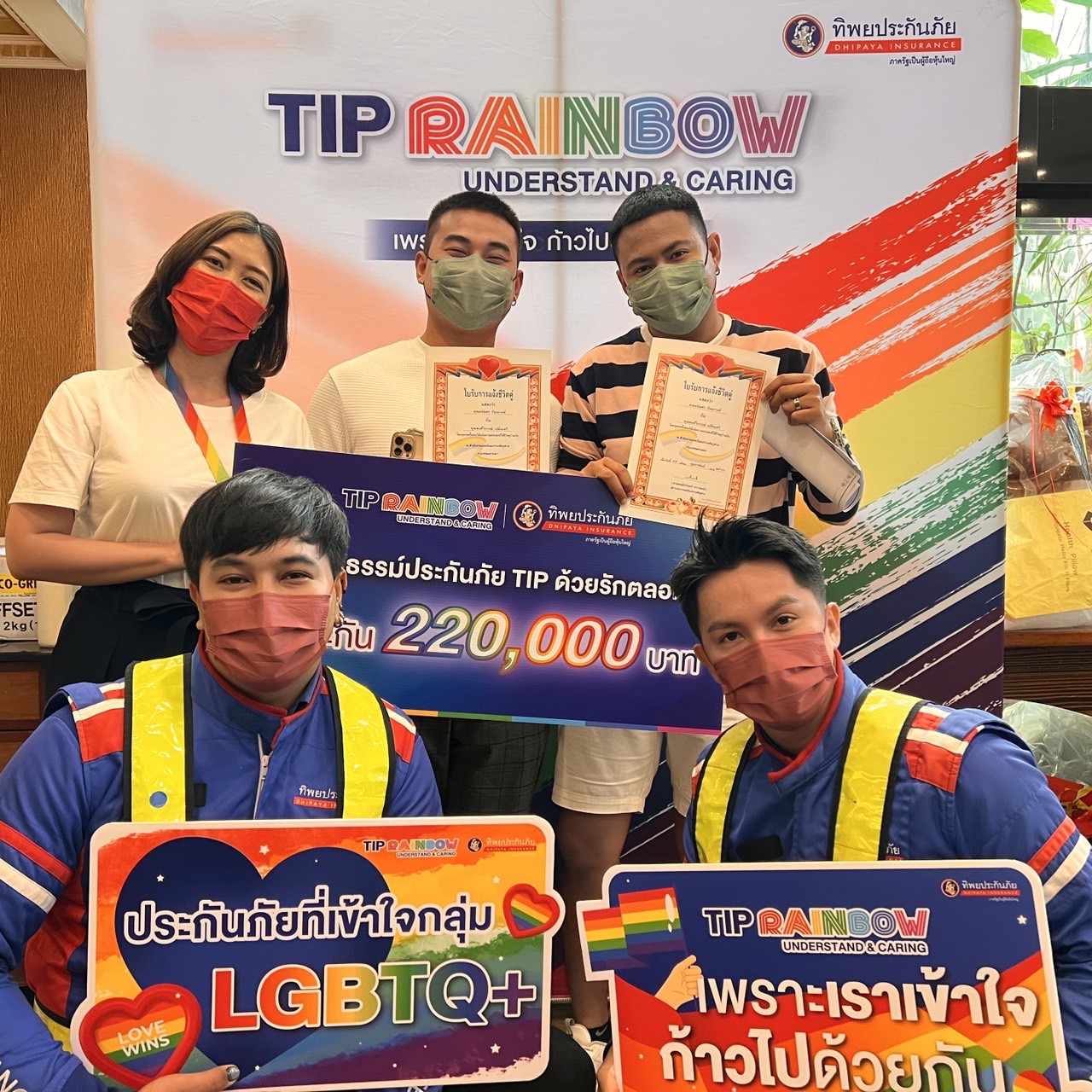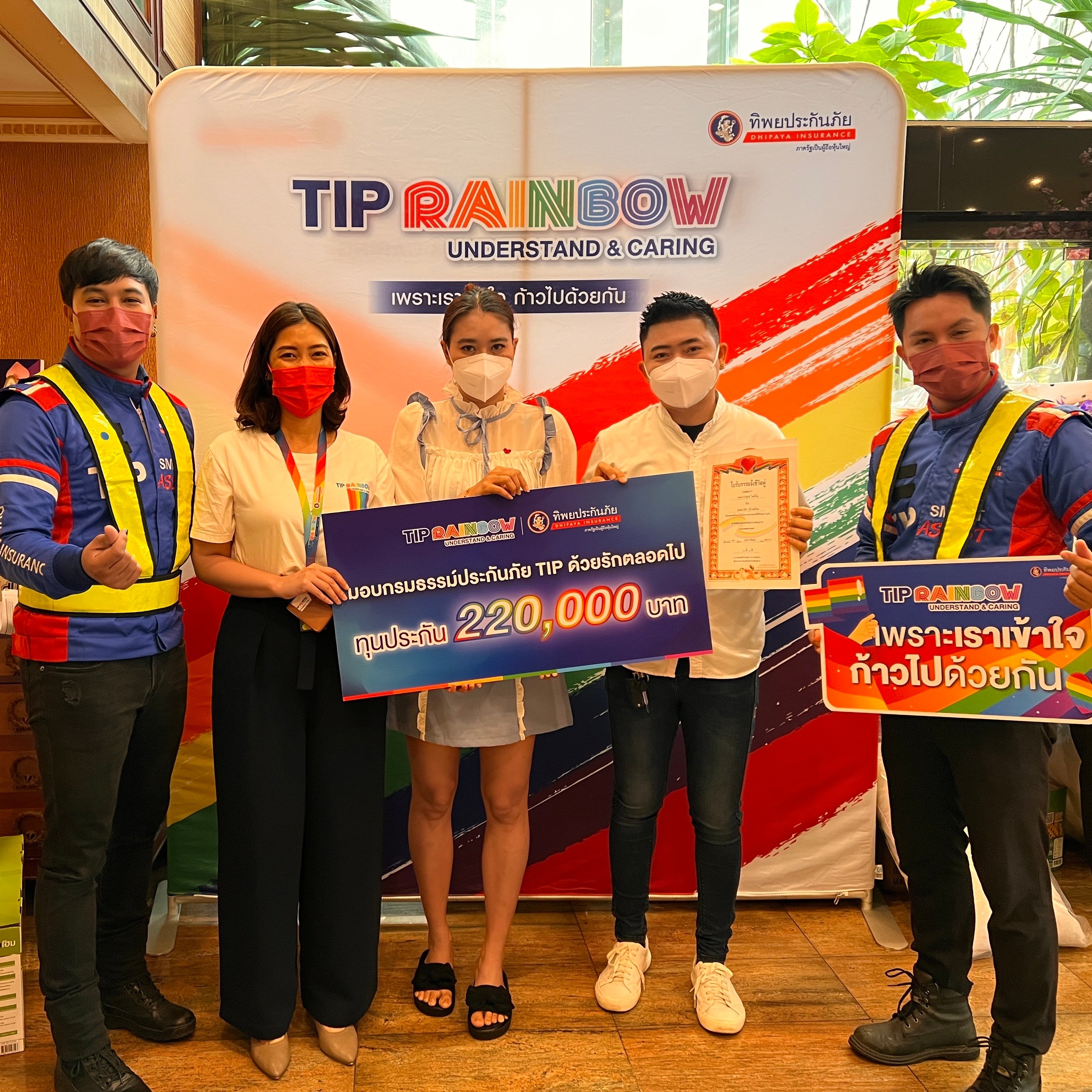 TIP Rainbow โดย ทิพยประกันภัย มอบกรมธรรม์ประกันภัย TIP ด้วยรักตลอดไป ให้กับ คู่รัก LGBTQ+ ที่มาจดแจ้งชีวิตคู่สมรสเพศเดียวกัน ในงาน “รักแท้.....ไม่แพ้พ่าย @ป้อมปราบศัตรูพ่าย”วันวาเลนไทน์