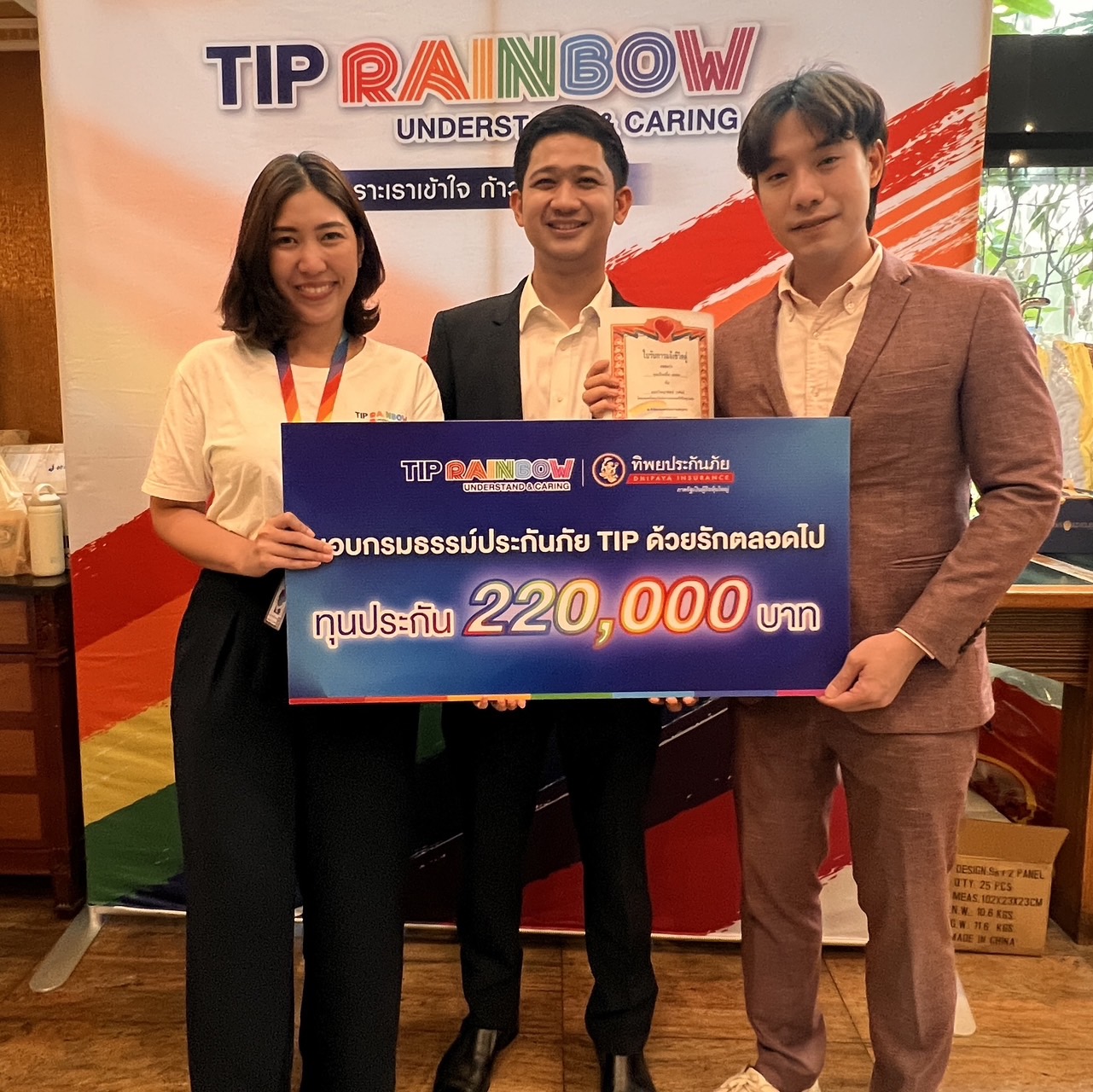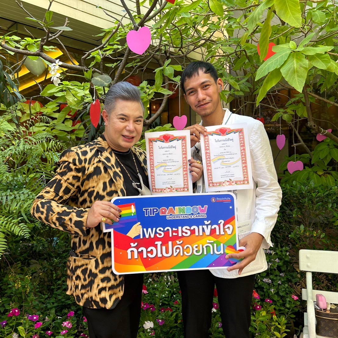 TIP Rainbow โดย ทิพยประกันภัย ร่วมกับ สำนักงานเขตป้อมปราบศัตรูพ่าย ร่วมบันทึกสถิติในวันแห่งความรัก บันทึกจดแจ้งชีวิตคู่สมรสเพศเดียวกัน ทุกคู่รัก LGBTQ+ จะได้รับใบรับการแจ้งชีวิตคู่ ในงาน “รักแท้.....ไม่แพ้พ่าย @ป้อมปราบศัตรูพ่าย และทางบริษัทฯ ได้มอบกรมธรรม์ประกันภัย “TIP ด้วยรักตลอดไป” คุ้มครองอุบัติเหตุและโรคร้ายแรงภาวะโคม่า จำนวน 37 คู่ ทั้งนี้กรมธรรม์ยังสามารถระบุ ผู้รับผลประโยชน์ เป็น “คู่รัก/คู่ชีวิต” เพศเดียวกันได้ ณ โรงแรมปรินซ์พาเลซ เขตป้อมปราบศัตรูพ่าย