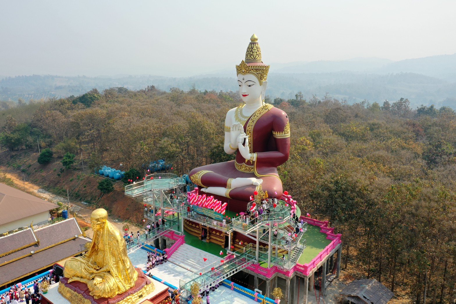 ดร. สมพร สืบถวิลกุล ประธานเจ้าหน้าที่บริหาร บมจ. ทิพย กรุ๊ป โฮลดิ้งส์ และกรรมการผู้จัดการใหญ่ บมจ. ทิพยประกันภัย คุณวิชชุดา ไตรธรรม ที่ปรึกษากรรมการผู้จัดการใหญ่ บมจ. ทิพยประกันภัย  ดร. ดนัย จันทร์เจ้าฉาย ประธานมูลนิธิธรรมดี พร้อมด้วยผู้บริหารและสื่อมวลชนร่วมพิธีเปิดสกายวอล์ค ซึ่งเป็นแลนด์มาร์คแห่งใหม่ของจังหวัดเชียงรายอยู่ภายในวัดแสงแก้วโพธิญาณ จัดสร้างขึ้นเพื่ออำนวยความสะดวกแก่ประชาชนและนักท่องเที่ยวที่ไปสักการะพระศรีอริยเมตไตรยบรมโพธิญาณ โดยสกายวอล์คได้ติดตั้งบริเวณหน้าองค์พระศรีอริยเมตไตรยบรมโพธิญาณ (ไหว้พระแบบหวาดเสียวแห่งเดียวในไทย) ชมวิวทิวทัศน์ อำเภอแม่สรวย ได้ 360 องศา รอบทิศทาง เดินบนกระจก 3 ชั้นบนความสูง 34 ฟุต ชั้นบนสุดของสกายวอล์คมีระดับความสูงอยู่ในระดับเข่าขององค์พระ ทั้งนี้ยังได้รับเกียรติจาก นายพุฒิพงศ์ ศิริมาตย์ ผู้ว่าราชการจังหวัดเชียงราย เป็นประธานในพิธีเปิด ณ วัดแสงแก้วโพธิญาณ ต. เจดีย์หลวง อ. แม่สรวย จ. เชียงราย