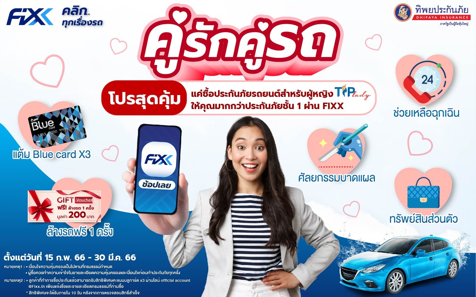คุณณัฐพล อังควานิช กล่าวว่า ในฐานะผู้นำด้านธุรกิจประกันภัยนั้น การร่วมมือในครั้งนี้เป็นการตอกย้ำการดำเนินงานที่ทิพยประกันภัยมุ่งเน้นพัฒนาผลิตภัณฑ์ประกันภัยให้ครอบคลุมลูกค้าและสามารถเข้าถึงการบริการของเราได้ทุกกลุ่ม รวมไปถึงกลยุทธ์ในการขยายและต่อยอดธุรกิจ และการพัฒนาโครงการต่างๆ ในอนาคตร่วมกัน เพื่อรองรับความต้องการที่หลากหลายของลูกค้า โดยในเฟสแรกลูกค้าจะได้รับสิทธิพิเศษทันทีเมื่อซื้อประกันภัยรถยนต์ชั้น 1 ที่เข้าใจผู้หญิง TIP Lady ผ่าน FIXX Application ลูกค้าจะได้รับแต้ม Blue Card x3 และคูปองล้างรถดูดฝุ่นฟรี 1 ครั้ง มูลค่า 300 บาท พร้อมความคุ้มครองค่าศัลยกรรมจากอุบัติเหตุ สูงสุด 1 ล้านบาท และคุ้มครองทรัพย์สินส่วนตัว สูงสุด 20,000 บาท รวมไปถึงบริการช่วยเหลือฉุกเฉินตลอด 24 ชั่วโมง
