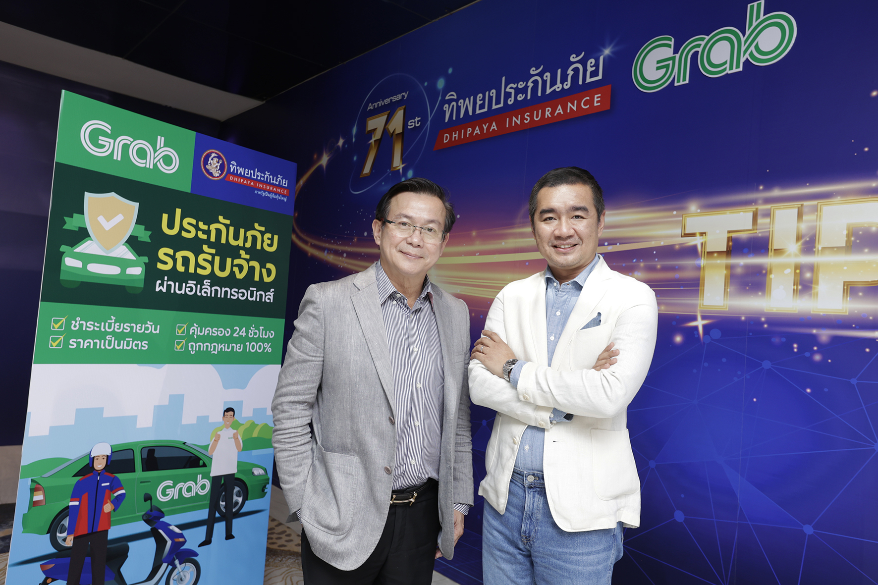 ดร.สมพร สืบถวิลกุล ประธานเจ้าหน้าที่บริหาร บริษัท ทิพย กรุ๊ป โฮล ดิ้งส์ จำกัด (มหาชน) และกรรมการผู้จัดการใหญ่ บริษัท ทิพยประกันภัย จำกัด (มหาชน) และนายวรฉัตร ลักขณาโรจน์ กรรมการผู้จัดการใหญ่ แกร็บ ประเทศไทย ร่วมเปิดตัว “ประกันภัยรถยนต์สำหรับรถรับจ้างผ่านระบบอิเล็กทรอนิกส์” เพื่อเจาะกลุ่มคนขับรถที่ให้บริการเรียกรถผ่านแอปพลิเคชันเป็นครั้งแรกในไทย ถือเป็นการยกระดับมาตรฐานประกันภัยรถยนต์ สำหรับบริการขนส่งสาธารณะในยุคดิจิทัล โดยชูจุดเด่นด้านความยืดหยุ่นและราคาประหยัดผ่านโมเดล Pay-Per-Use ที่ให้ความคุ้มครองแบบรายวัน นับตั้งแต่พาร์ทเนอร์คนขับเข้าสู่ระบบเพื่อรับงานในแต่ละครั้ง ซึ่งมีระยะเวลาคุ้มครอง 24 ชั่วโมงและไม่ต้องจ่ายรายปี โดยจะคุ้มครองคนขับและผู้โดยสารในกรณีเกิดอุบัติเหตุ รวมถึงคุ้มครองชีวิตและทรัพย์สินของบุคคลภายนอก สูงสุด 5 แสนบาท นอกจากนี้ แกร็บยังได้พัฒนาแอปพลิเคชันของคนขับให้มีฟีเจอร์ในการตรวจสอบรายละเอียดและสิทธิความคุ้มครองด้านประกันภัยได้แบบเรียลไทม์ ทั้งประกันภัยอุบัติเหตุและประกันภัยรถยนต์ เพื่อให้ข้อมูลและอำนวยความสะดวกให้กับพาร์ทเนอร์คนขับทุกคน