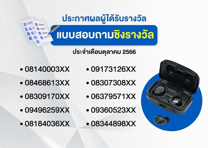 ประกาศผลผู้ได้รับรางวัลจากกิจกรรมตอบแบบสอบถามความพึงพอใจ ประจำเดือนตุลาคม 2566