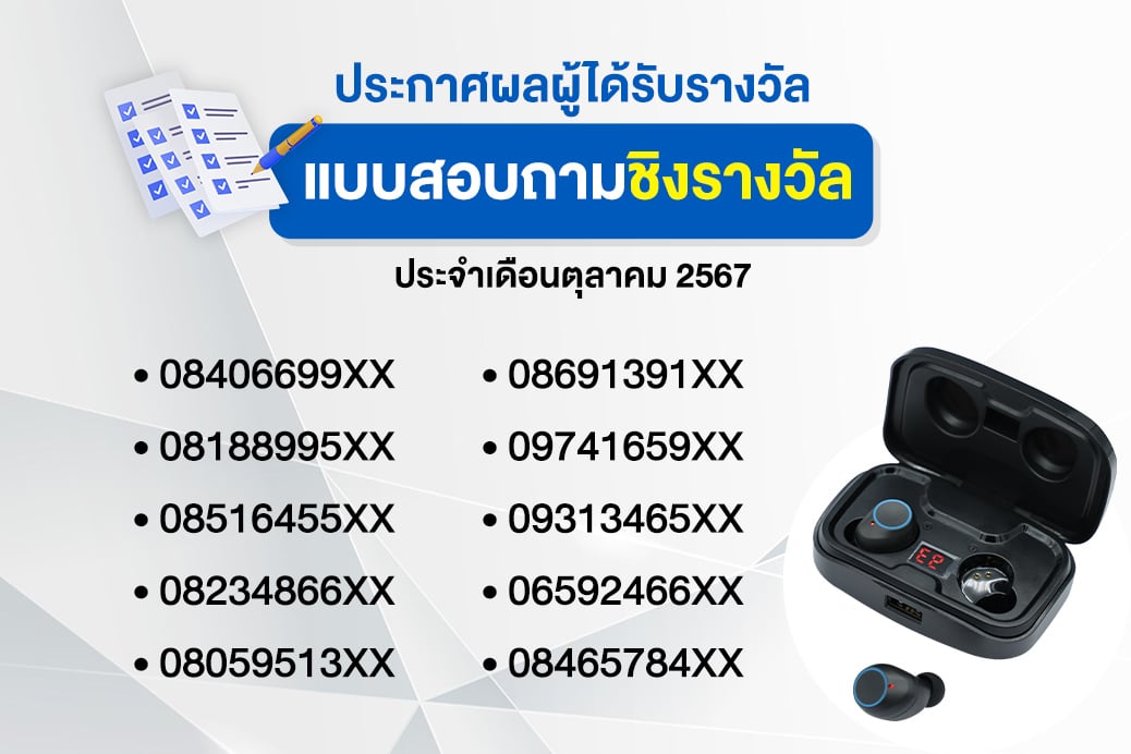 ผู้ได้รับรางวัลจะต้องยืนยันการรับรางวัล โดยแจ้ง ชื่อ-นามสกุล หมายเลข โทรศัพท์ และที่อยู่ในการจัดส่งของรางวัลมาทาง Google Form ภายในวันที่ 20 ตุลาคม 2567 หากไม่ทำการยืนยันการรับรางวัล จะถือว่าสละสิทธิ์