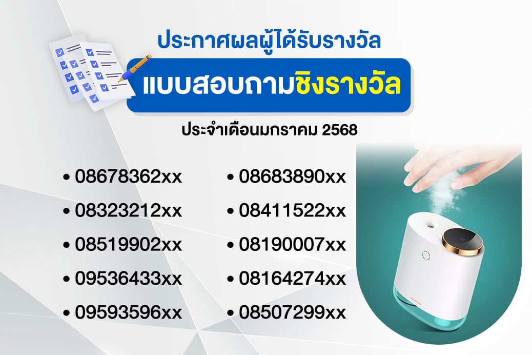 ผู้ได้รับรางวัลจะต้องยืนยันการรับรางวัล โดยแจ้ง ชื่อ-นามสกุล หมายเลขโทรศัพท์ และที่อยู่ในการจัดส่งของรางวัล