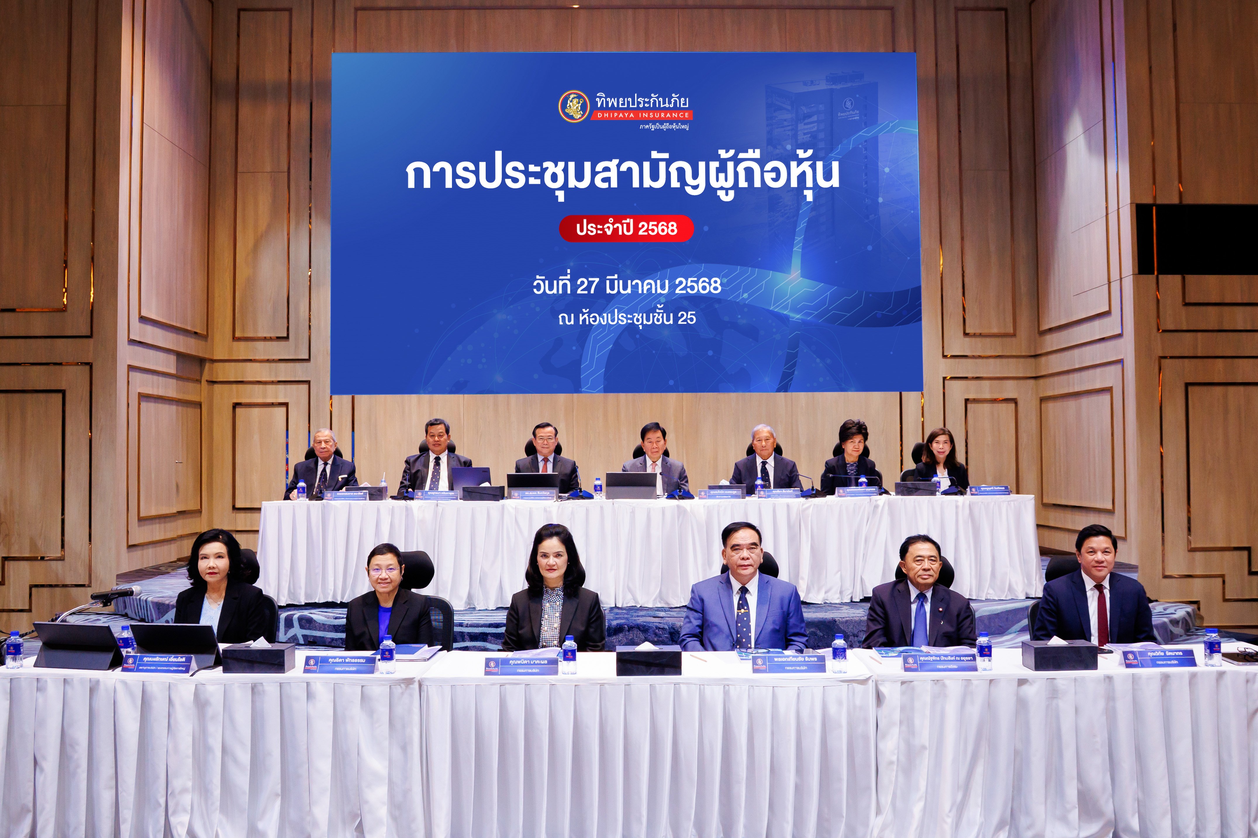 นายสมใจนึก เองตระกูล ประธานกรรมการ ดร.สมพร สืบถวิลกุล กรรมการผู้จัดการใหญ่ พร้อมด้วยคณะกรรมการบริษัท ทิพยประกันภัย จำกัด (มหาชน) ร่วมแถลงผลการดำเนินงาน ในการประชุมสามัญผู้ถือหุ้นประจำปี 2568 ณ ห้องประชุมชั้น 25 อาคารสำนักงานใหญ่ บริษัท ทิพยประกันภัย จำกัด (มหาชน) โดยได้รายงานวาระการประชุมสำคัญให้ผู้ถือหุ้นได้รับทราบและพิจารณา ซึ่งได้รับการอนุมัติตามที่คณะกรรมการเสนอทุกวาระ และที่ประชุมผู้ถือหุ้นมีมติอนุมัติการจ่ายเงินปันผลประจำปีเป็นเงินสด ในอัตราหุ้นละ 1.60 บาท ซึ่งบริษัทฯ ได้จ่ายเงินปันผลระหว่างกาลไปแล้ว เมื่อวันที่ 19 กันยายน 2567 ในอัตราหุ้นละ 0.50 บาท และจ่ายเงินปันผลส่วนที่เหลืออีกในอัตราหุ้นละ 1.10 บาท ให้แก่ผู้ถือหุ้นที่มีสิทธิได้รับเงินปันผลตามที่ปรากฏรายชื่อ ณ วันปิดสมุดทะเบียน และกำหนดจ่ายเงินปันผลในวันที่ 18 เมษายน 2568