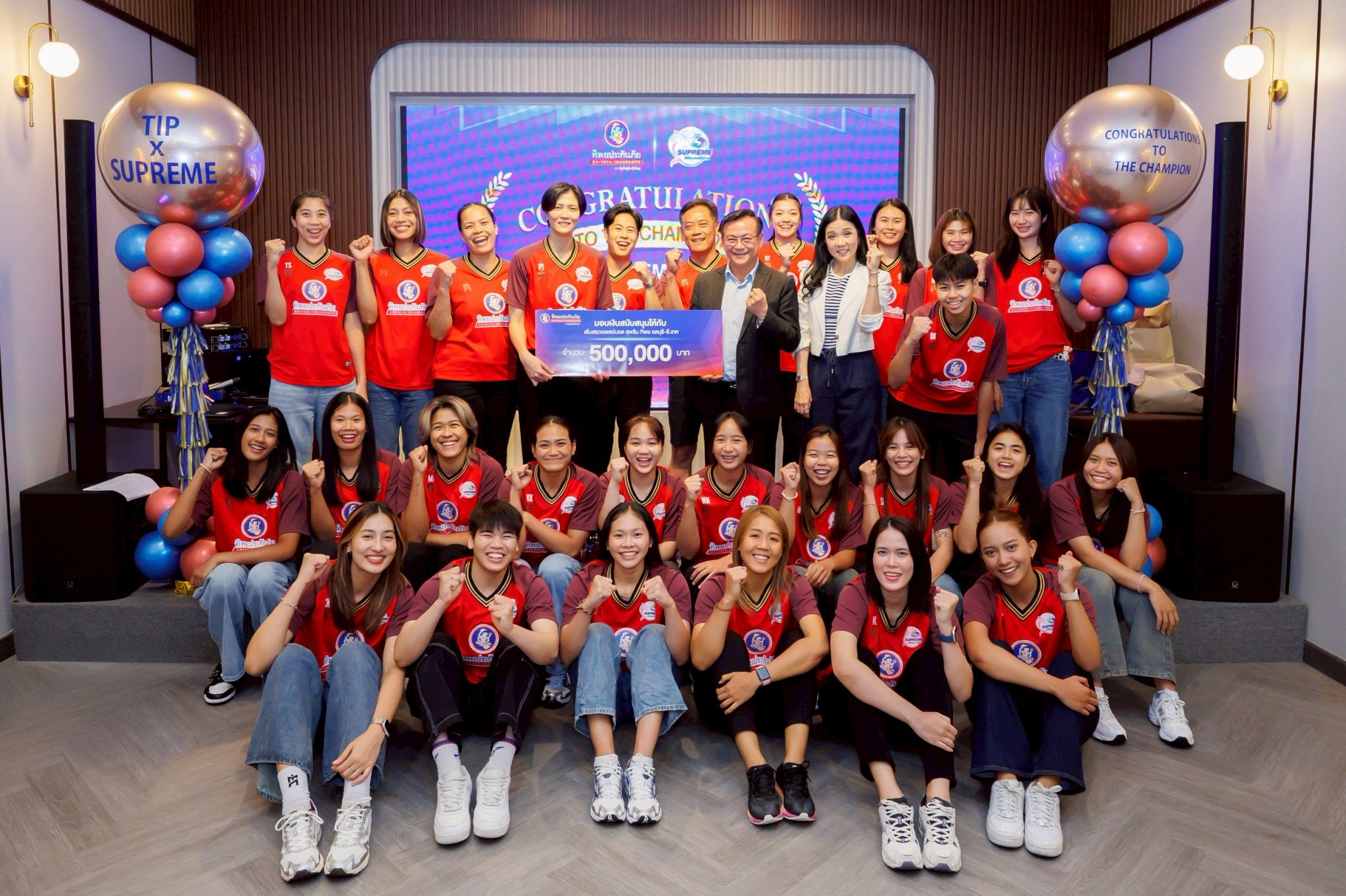 ดร.สมพร สืบถวิลกุล ประธานเจ้าหน้าที่บริหาร บริษัท ทิพย กรุ๊ป โฮลดิ้งส์ จำกัด (มหาชน) และกรรมการผู้จัดการใหญ่ บริษัท ทิพยประกันภัย จำกัด (มหาชน) พร้อมคณะผู้บริหาร เป็นเจ้าภาพจัดงานเลี้ยงฉลองความสำเร็จให้กับทีมนักกีฬาสโมสรวอลเลย์บอลหญิง “สุพรีม ทิพย ชลบุรี-อี.เทค” และทีมงาน ที่สามารถคว้าแชมป์การแข่งขันวอลเลย์บอลอาชีพรายการไทยแลนด์ลีก ฤดูกาล 2024–2025 มาครองได้เป็นสมัยที่ 4 อย่างยิ่งใหญ่