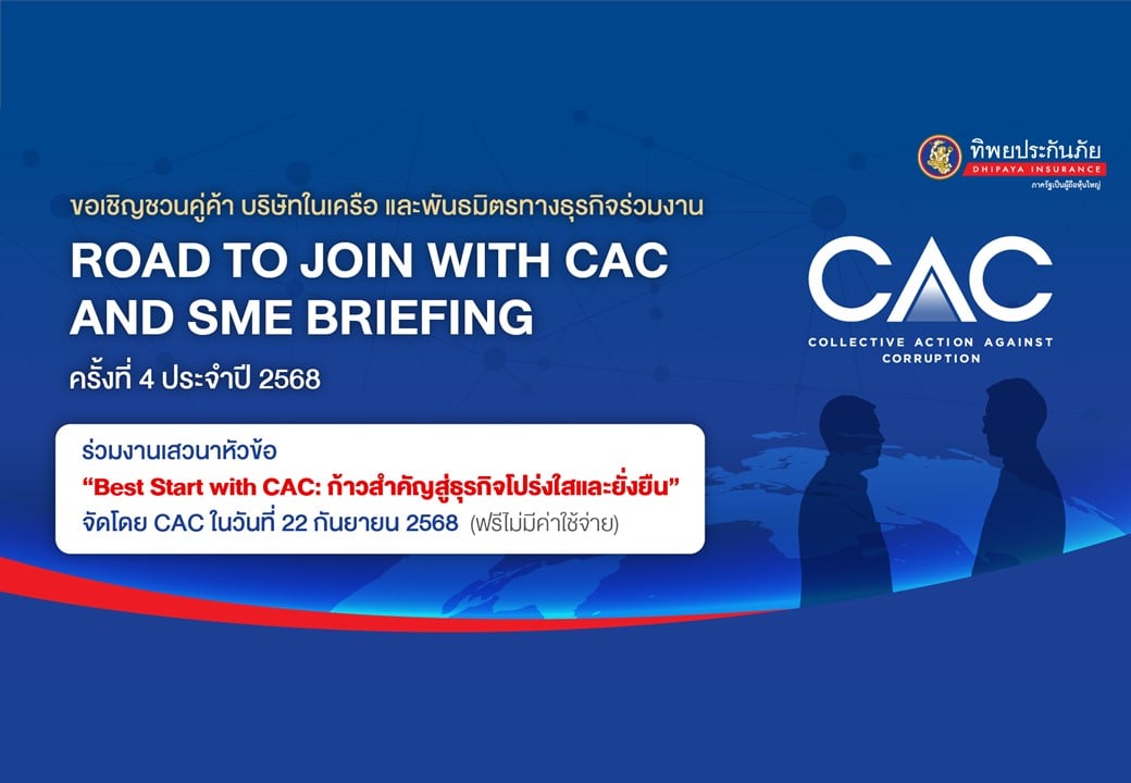 ขอเชิญชวนให้คู่ค้า บริษัทในเครือ หรือพันธมิตรทางธุรกิจเข้าร่วมงาน Road to Join with CAC and SME Briefing ครั้งที่ 4 ประจำปี 2568
