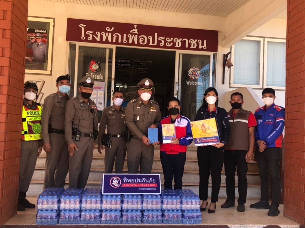 บริษัท ทิพยประกันภัย จำกัด (มหาชน) มอบน้ำดื่มทิพย ให้กับ พ.ต.อ.ณัฏฐ์เดชา ฐานิสภัทราพงศ์ ผกก.สภ.ศรีวิชัย เพื่อนำไปบริการประชาชนที่เดินทางกลับบ้านในช่วงเทศกาลปีใหม่ 2565 และให้เจ้าหน้าที่ ตำรวจ สาธารณสุข อสม.อปพร. ประจำจุดตรวจ ที่ปฏิบัติหน้าที่อำนวยการจราจร ช่วยเหลือประชาชน ณ จุดตรวจที่ 3 สี่แยกบ้านโนนอุดม หน้า สภ.ศรีวิชัย จ.สกลนคร