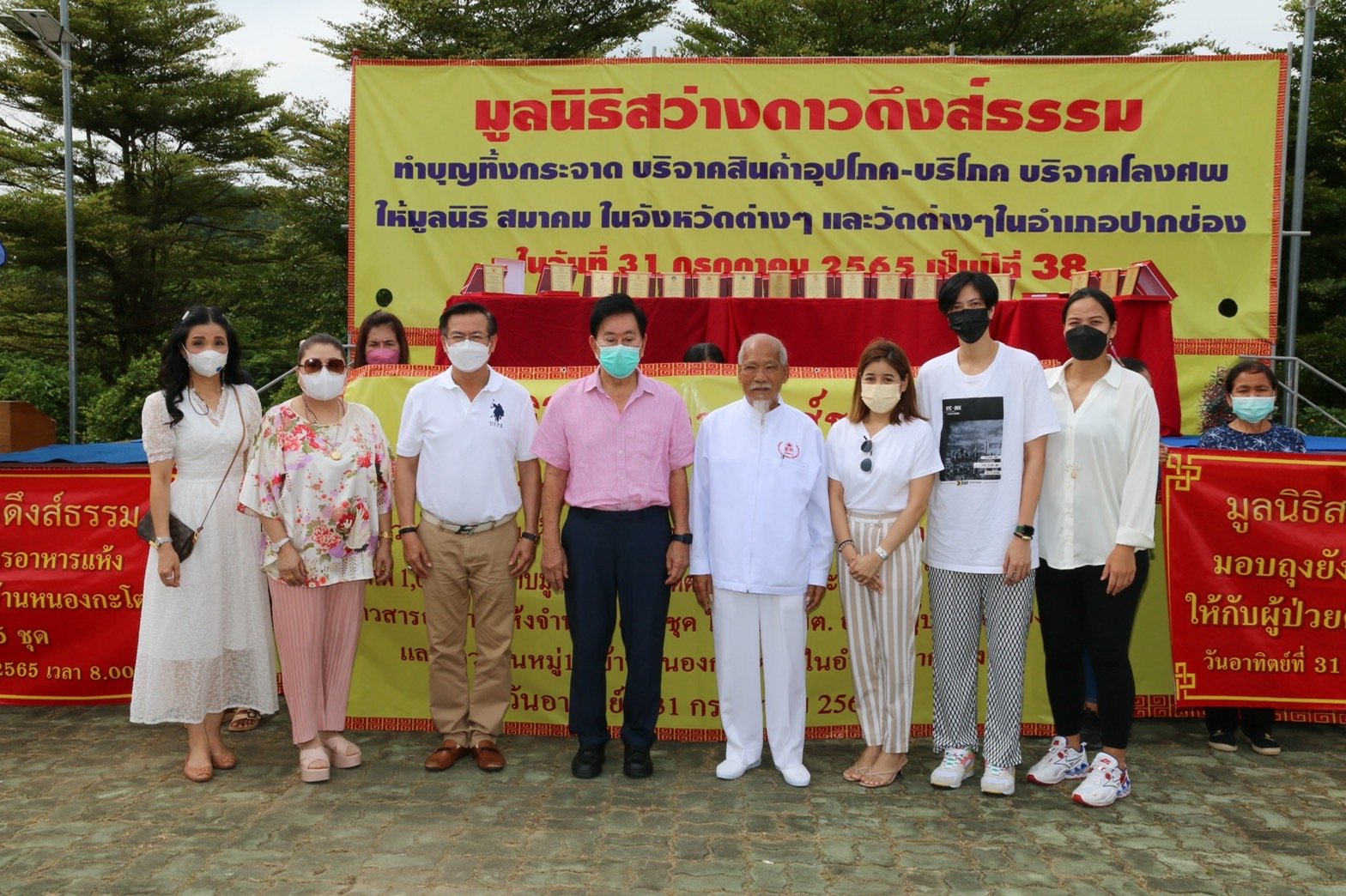 คุณสมใจนึก เองตระกูล ประธานกรรมการ บมจ. ทิพยประกันภัย ดร.สมพร สืบถวิลกุล ประธานเจ้าหน้าที่บริหาร บมจ.ทิพย กรุ๊ป โฮลดิ้งส์ และ กรรมการผู้จัดการใหญ่ บมจ.ทิพยประกันภัย คุณวิชชุดา ไตรธรรม ที่ปรึกษากรรมการผู้จัดการใหญ่ บมจ.ทิพยประกันภัย และคุณสินีนารถ เองตระกูล กรรมการผู้จัดการ กลุ่มบริษัท เอสอี บิซ พร้อมหน่วยหนุมานทิพยจิตอาสา ร่วมทำบุญทิ้งกระจาดมอบข้าวสารอาหารแห้ง และของใช้ที่จำเป็นอื่นๆ อาทิ ยารักษาโรค รองเท้ายาง จำนวน 1,680 ชุด ให้กับผู้ยากไร้และผู้ป่วยติดเตียง พร้อมกันนี้ยังร่วมบริจาคโลงศพ จำนวน 200 หีบ และผ้าห่อศพ ให้กับมูลนิธิสว่างดาวดึงส์ (ปากช่อง) เพื่อไปมอบให้วัดและมูลนิธิต่างๆ โดยมีคุณวิชัย ชูชัยเจริญ ประธานมูลนิธิสว่างดาวดึงส์ธรรมและประธานจัดงาน ร่วมมอบ ณ อุทยานวิหารเซียน ปากช่อง