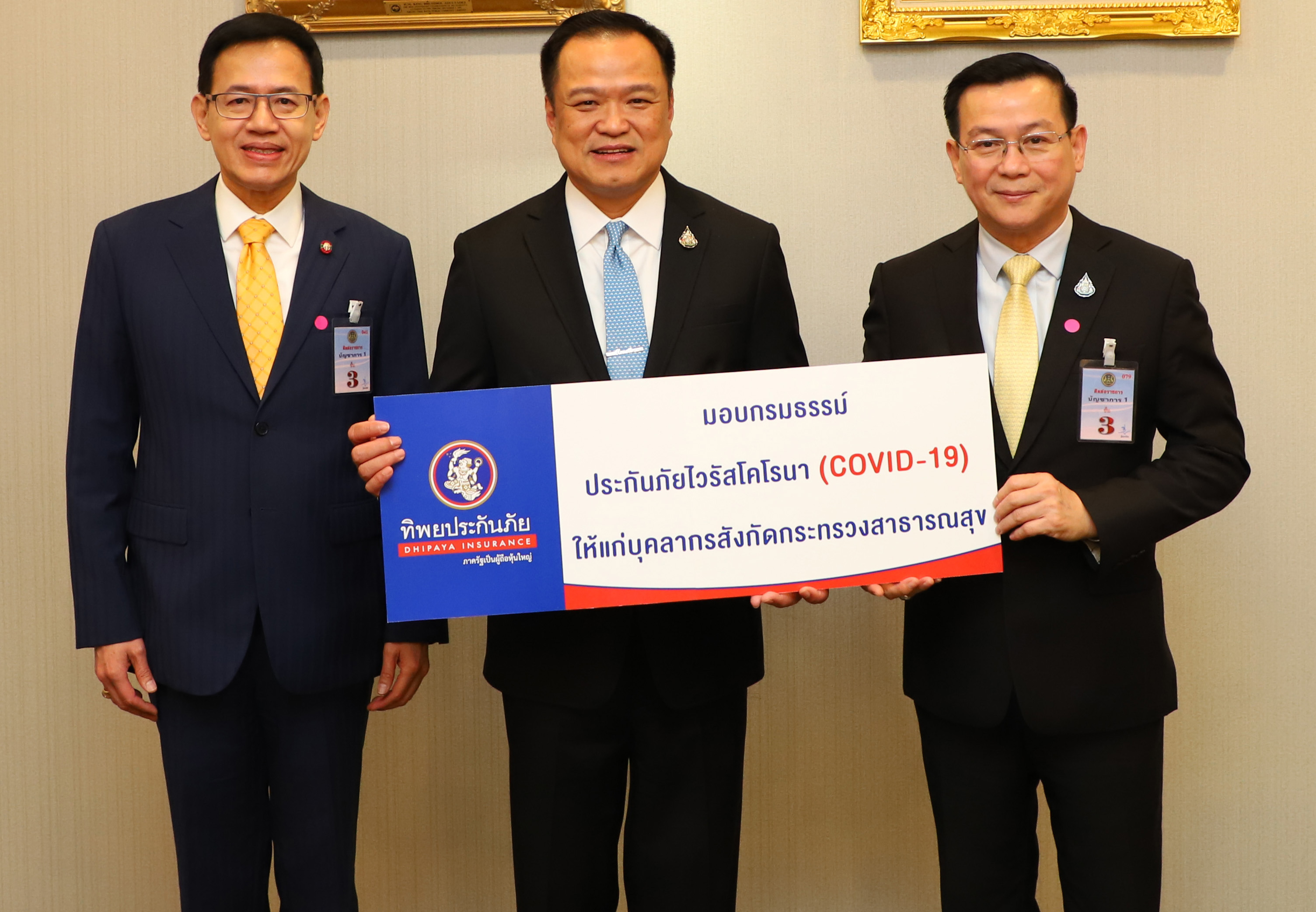 ดร.สมพร สืบถวิลกุล กรรมการผู้จัดการใหญ่ ทิพยประกันภัย ห่วงใยเจ้าหน้าที่กระทรวงสาธารณสุข ซึ่งถือว่าเป็นหนึ่งในหน่วยงานที่มีความเสียสละ ที่คอยดูแลควบคุมสถานการณ์ ในช่วงที่ไวรัสโคโรนา (COVID-19) แพร่ระบาด เป็นที่วิตกกังวลต่อประชาชนชาวไทยและประชาชนทั่วโลกในขณะนี้ เพื่อเป็นขวัญและกำลังใจ ให้กับเจ้าหน้าที่กระทรวงสาธารณสุข ทิพยประกันภัย จึงมอบกรมธรรม์ประกันไวรัสโคโรนา (COVID-19) จำนวน 5,000 กรมธรรม์ โดยมีคุณอนุทิน ชาญวีรกูล รองนายกรัฐมนตรีและรัฐมนตรีว่าการกระทรวงสาธารณสุข เป็นผู้รับมอบ และดร.สุทธิพล ทวีชัยการ เลขาธิการคปภ. ร่วมเป็นสักขีพยาน ณ ตึกบัญชาการ ทำเนียบรัฐบาล