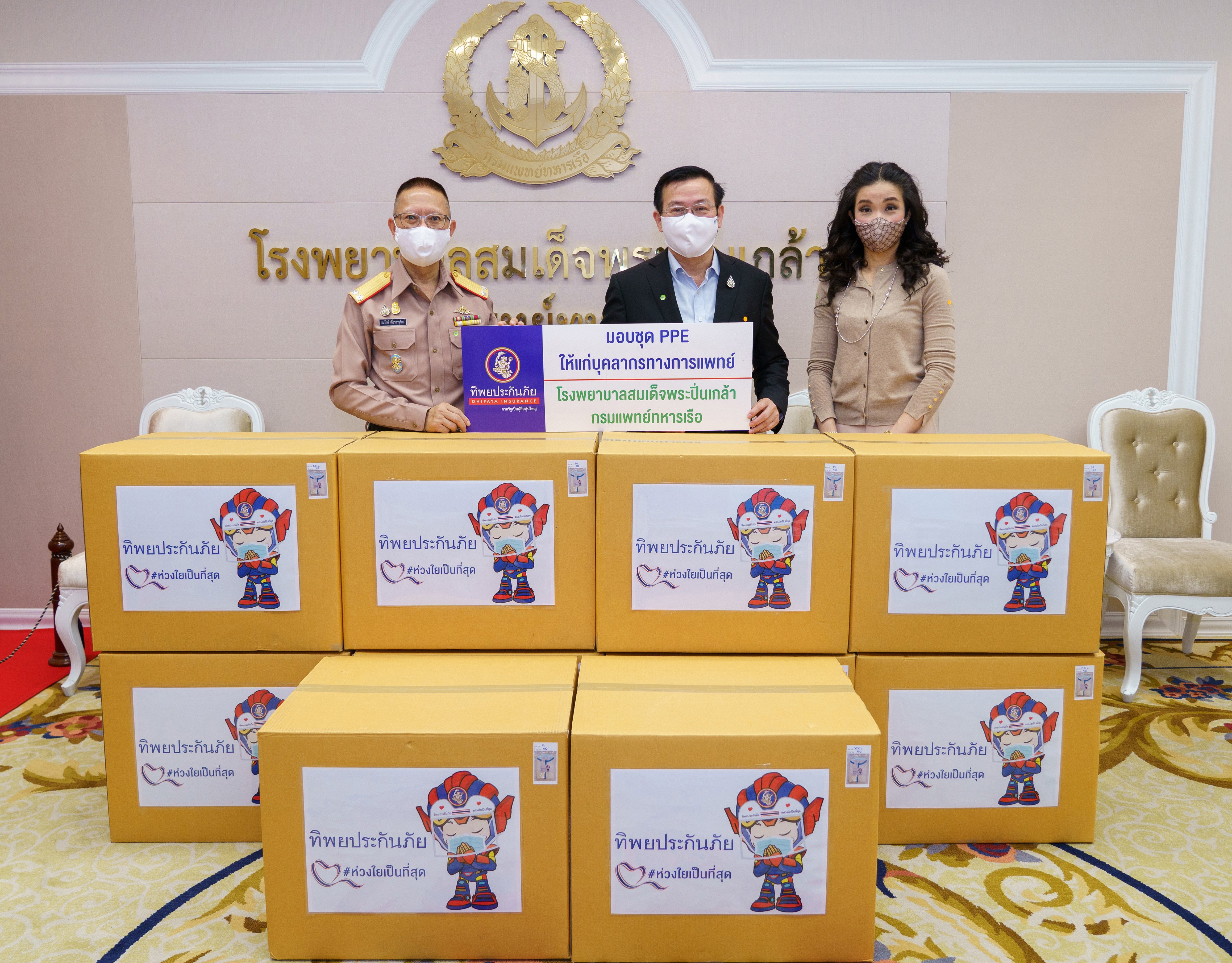 ดร.สมพร สืบถวิลกุล กรรมการผู้จัดการใหญ่ ทิพยประกันภัย มอบชุด PPE (Personal Protective Equipment) ชุดอุปกรณ์ป้องกันความปลอดภัยส่วนบุคคล ให้แก่บุคลากรทางการแพทย์ของโรงพยาบาลสมเด็จพระปิ่นเกล้า กรมแพทย์ทหารเรือ โดยมี พล.ร.ต. ธนรักษ์ เอี่ยวสานุรักษ์ ผู้อำนวยการ โรงพยาบาลสมเด็จพระปิ่นเกล้า กรมแพทย์ทหารเรือ เป็นผู้รับมอบ เพื่อเป็นการป้องกันและลดโอกาสการติดเชื้อจากการรักษาดูแลผู้ป่วยของบุคลากรทางการแพทย์ ณ โรงพยาบาลสมเด็จพระปิ่นเกล้า กรมแพทย์ทหารเรือ กรุงเทพฯ