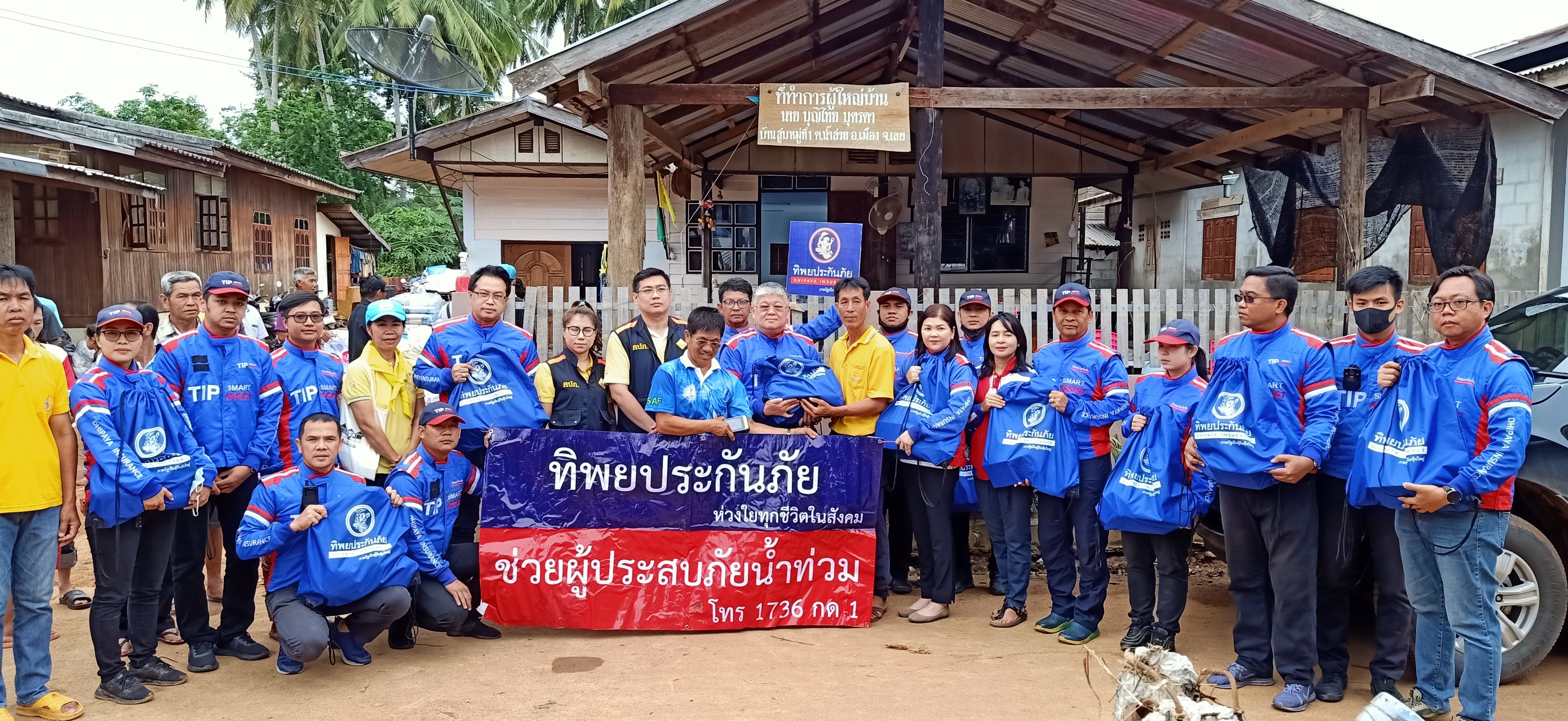 นายเกษมศักดิ์ วงศ์อุไร ผู้ช่วยกรรมการผู้จัดการใหญ่ สายงานสินไหมทดแทน นายโกสนธ์ พิศภา ผู้อำนวยการฝ่ายสินไหมรถยนต์ ,TIP SMART ASSIST พร้อมหน่วยหนุมานทิพยจิตอาสาและทีมทิพยประกันภัยสาขาอุดรธานี ลงพื้นที่ร่วมกับ นายวุฒิกร เกตุแก้ว หัวหน้าอาวุโส และทีมงาน สนง.คปภ. จ.เลย มอบถุงยังชีพ อาหาร น้ำดื่ม รวมถึง อุปกรณ์เครื่องใช้ในชีวิตประจำวัน อาทิ หม้อหุงข้าวไฟฟ้า เครื่องครัว แปรงสีฟัน ยาสีฟัน สบู่ แชมพู ผงซักฟอก อุปกรณ์ ทำความสะอาด ฯลฯ ให้กับประชาชนที่ได้รับผลกระทบจากพายุ ซินลากูจนบ้านเรือนเสียหาย โดยนำไปมอบให้ที่บ้าน ณ บ้านสูบ หมู่ที่ 1 ต.น้ำสวย อ.เมือง จ.เลย