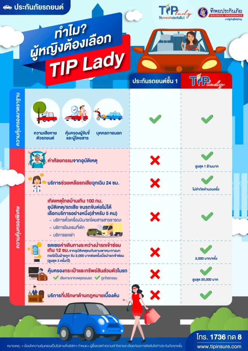 TIP Lady ประกันรถยนต์ชั้น 1 บริการสุดพิเศษเพื่อคุณผู้หญิงโดยเฉพาะ พร้อมดูแลตลอด 24 ชม. มาไว ใส่ใจ ไม่มากเรื่อง