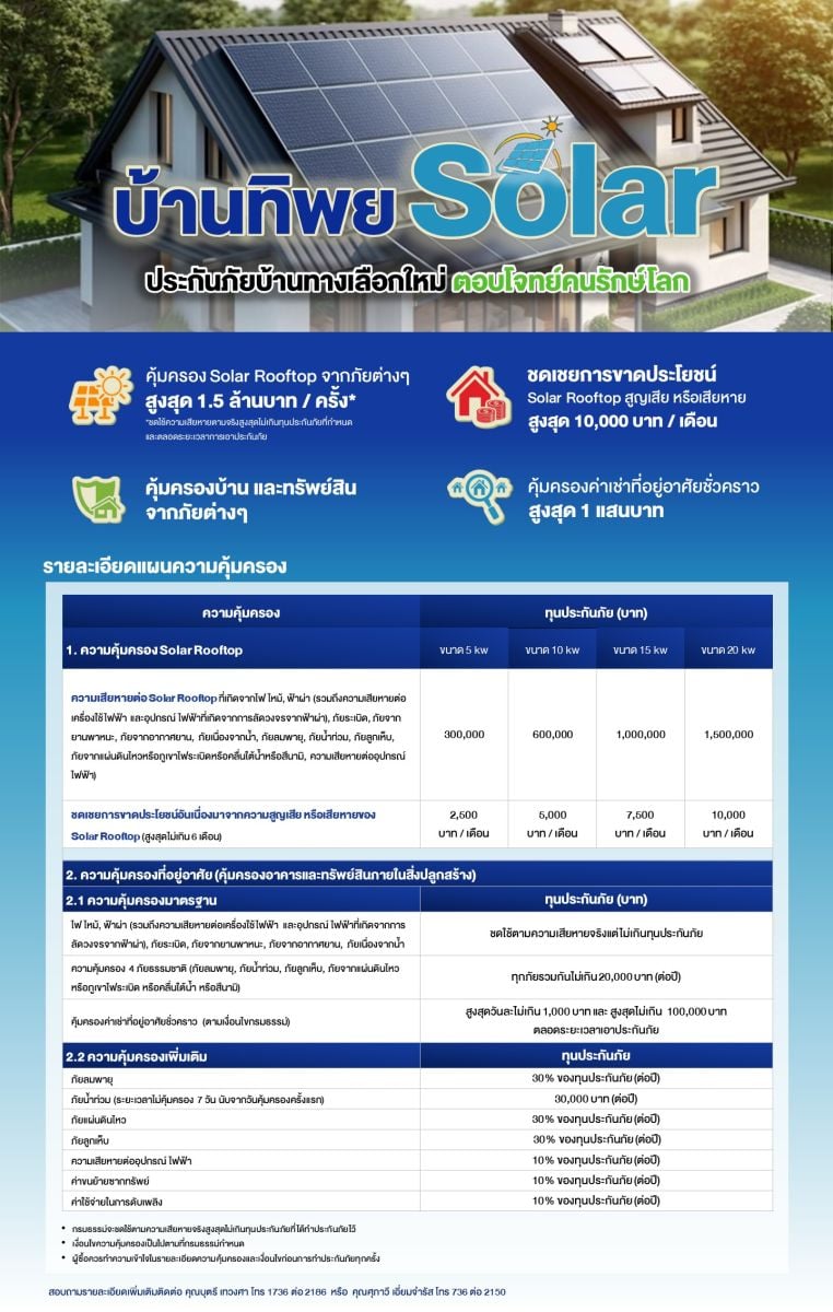 - ชดเชยการขาดผลประโยชน์อันเนื่องมาจากความสูญเสีย หรือเสียหายของ Solar Rooftop